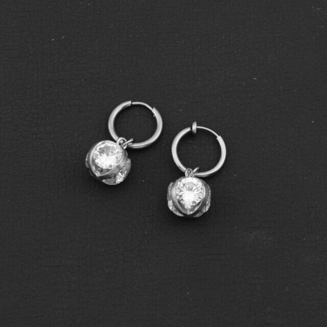 AREUM ピアス イヤリング CZダイヤ リング 四方向 垂れ下がり ダイヤボール 新作 片耳1つ入り 他にないデザイン メンズ レディース