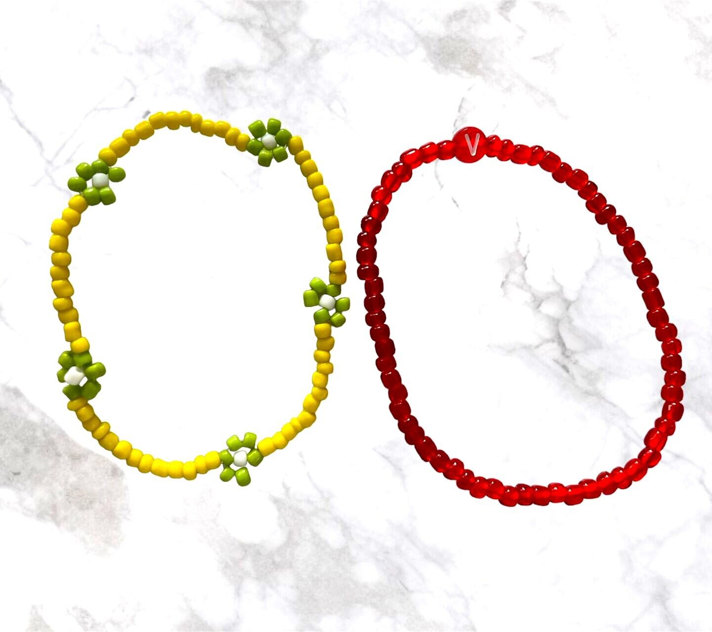 ブレスレット テテ 着用モチーフ V ビーズアクセサリー 2本セット 花柄 ワンポイント 爽やか ビーズ 韓国 カラフル アクセサリー